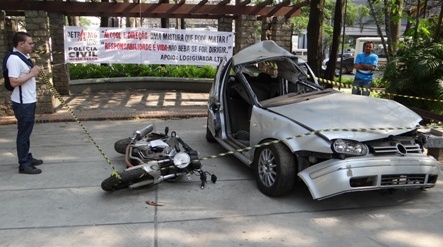 Exposição de moto e veículo batidos por condutores inabilitados e embriagados