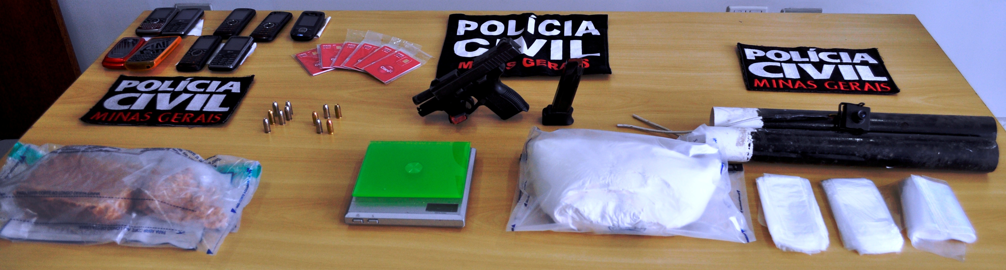 Com os homens foram apreendidos aproximadamente R$ 60 mil em drogas, entre elas, um quilo de cocaína, uma barra de 800 gramas de crack, 300 pedras de crack pronta para venda, uma pistola semi-automática calibre 380, onze munições, nove celulares e seis chips, balança de precisão e sacos para embalar os entorpecentes. Um veículo Toyota Hilux que pertenceria à quadrilha também foi apreendido.