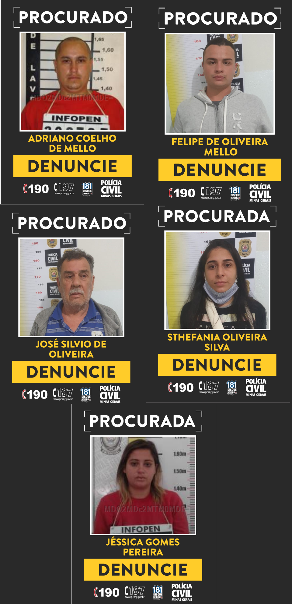 A Polícia Civil, por meio da Delegacia Regional em Lavras, solicita o apoio da população com quaisquer informações que possam auxiliar na localização dos foragidos ou na identificação de novas vítimas, por meio do WhatsApp (31) 97595-5150 ou dos números telefônicos (35) 3829-3574, 3829-3572, 3829-3576 e 3829-3551.