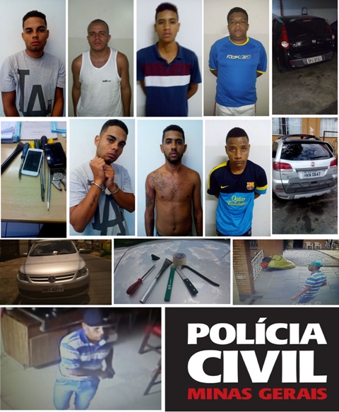 Um dos integrantes, responsável pelo fornecimento do material bélico, trabalhava em uma empresa de segurança privada. Presos: Adriano junio da Cruz, Jefferson Juan da Silva, Noelson Philipe Paixão, Franklin Aurélio de Jesus, Richard Quirino de Barros e Ronald Felipe Gonçalves Santos. Com o grupo, a polícia apreendeu Um VW/Gol Clonado/Roubado; um Palio Weekend Clonado/Roubado; um Fiat/Uno Vivace; Televisões; Celulares; Relógios; Tênis; Faqueiro; Garrafas de Bebidas; Vídeo Game; Frascos de Perfumes; Ferramentas utilizadas nos arrombamentos.